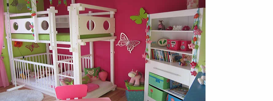 Irgendwann wird das Gitterbett zu klein und es muss ein neues Bett gekauft werden. Für kleine Räume sind Hochbetten sehr praktisch, da das Kind darunter noch eine Spielfläche hat. Hier finden Schreibtisch, Spielzeugkisten oder eine Kuschelhöhle Platz. Hochbetten sind allerdings erst für Kinder ab 6 Jahren geeignet. Wenn mehrere Kinder in einem Zimmer schlafen, kann ein Stockbett gute Dienste leisten. Es benötigt nicht mehr Platz als ein normales Bett und im Zimmer bleibt mehr Raum zum Spielen. Ist im Kinderzimmer genug Platz, kann man auch ein Abenteuerbett kaufen. Dieses gibt zum Beispiel als Burg, Piratenschiff, Spielhaus, Schloss oder anderen Varianten. Da kommt garantiert keine Langeweile im Kinderzimmer auf!
